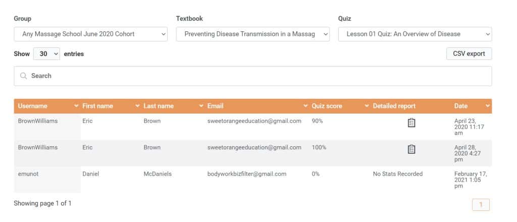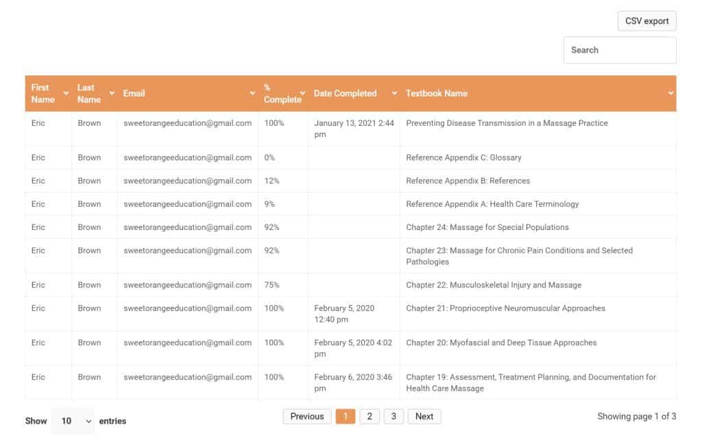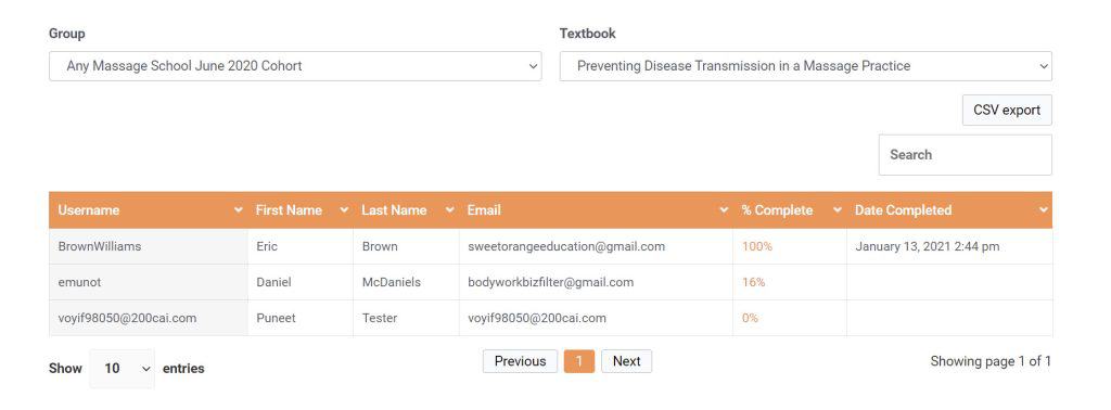 - Both the Textbook and Quiz reports will allow you to download CSV files of the reports for your record keeping.
