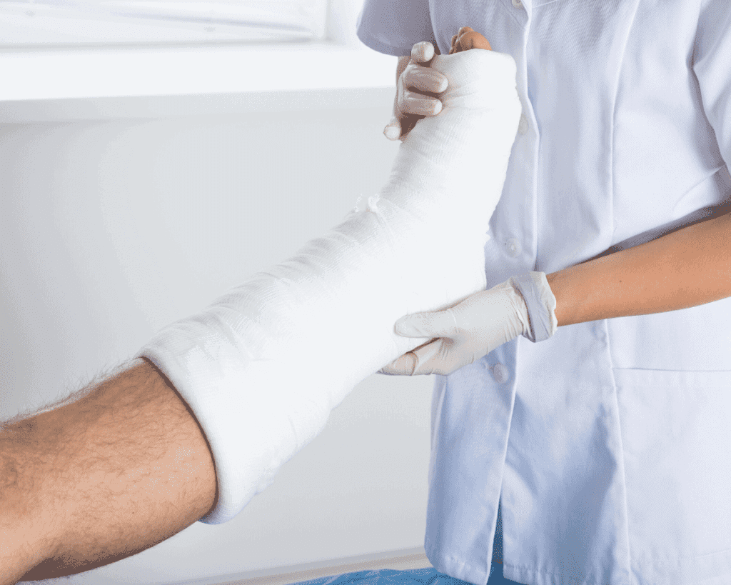 Common injuries include bruises, skin wounds, burns, and the dislocation of bones, bone breaks, muscle strains, sprains, and tendon pathologies.