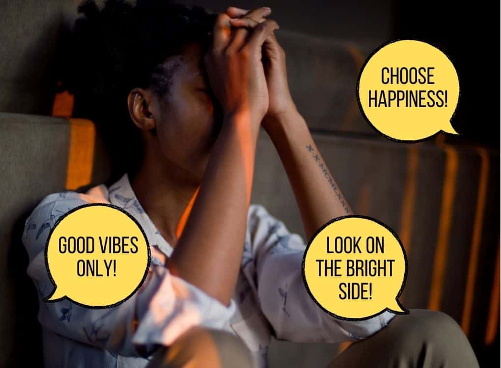 A client believing they should be positive in the face of adversity may ignore serious problems, avoid dealing with underlying issues, and fail to seek out support. In addition, the client may be unable to feel positive and so feel shame that they are failing.